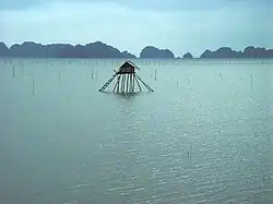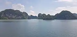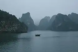 Currently, the expansion of urban areas and population growth, construction of ports and factories, tourism and service activities, household and industrial waste, fishing and aquaculture practices, have not only become threats but have also caused alarming levels of environmental pollution and landscape changes in Ha Long Bay.[25][26] Due to pollution, the once thriving coral reefs in the deep sea of Ha Long Bay are deteriorating.[27] The formerly clear waters of the bay are increasingly becoming turbid and sedimented, prompting scientists to warn of the possibility of Ha Long Bay becoming "swamped."[28] Additionally, as Ha Long Bay is surrounded by thousands of limestone islands, which are mostly good construction materials, they are susceptible to private exploitation, leading to landscape distortion.[29]