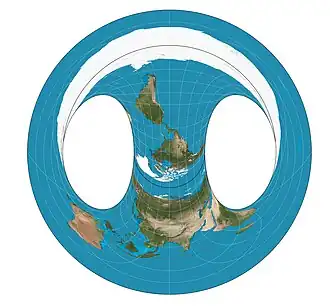 - ↑ Snyder, John P. (1993). Flattening the Earth: Two Thousand Years of Map Projections. Chicago: University of Chicago Press. pp. 228–229. ISBN 0-226-76747-7. Retrieved 2011-11-14.