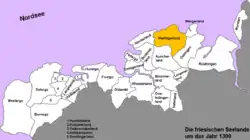 The Harlingerland is a strip of land on the North Sea coast of East Frisia. While today the whole of the district of Wittmund is usually described as Harlingerland, historically it specifically refers to the northern part of the present district, which formed the old Frisian state of this name, in particular, the regions around Esens and Wittmund. The region around Friedeburg still belonged at that time to the Frisian state of Östringen.