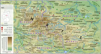 ![]() Topographic map of the Harz Mountains | |
