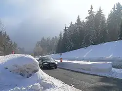 The Harz is grazed by the A 7 motorway in the west and the A 38 in the south. A four-lane motor road, the B 243 runs along the southwestern perimeter of the Harz via Osterode to Bad Lauterberg. In addition there is a good federal road (the B 6, B 4) from Goslar to Braunlage. The North Harz Foreland benefits from the newly built B 6n. Both the B 4 and the B 6n have been upgraded almost to motorway standard. The B 4 crosses the Harz from Bad Harzburg on a north–south axis running through Torfhaus and Braunlage as far as Ilfeld on the edge of the South Harz. The rest of the Harz is also well served by federal roads. Important ones include the Harz high road (Harzhochstraße, the B 242), which crosses the Harz in an east–west direction (from Seesen to Mansfeld) and the B 241, which runs from Goslar in the north over the Upper Harz (Clausthal-Zellerfeld) as far as Osterode in the south.