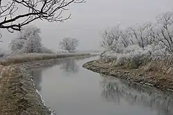 The formerly marshy valley has been made suitable for agriculture by land improvement since the 18th century. Numerous ditches and canals bisect those areas used mainly as arable land or grassland, regulating the water levels. The most important are the Great Havelland Canal (Havelländische Große Hauptkanal) and the Little Havelland Canal (Kleine Haupt- und Grenzkanal), which both empty into the Rhin.[1]