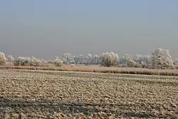 The natural vegetation of the luch was determined by its waterlogged terrain. Under such conditions an open carr fen landscape was formed. Revealingly the Slavic word lug means "marsh" as well as "meadow". Until the establishment of the present drainage system, there was a lot of bog formation. Today the countryside is dominated by grassland farming. The ditches and canals are mainly bordered by poplars and alders. Occasionally there are small copses with plantation-like monocultures of grey or hybrid poplar.