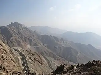 The Hijaz Mountains[1] (Arabic: جِبَال ٱلْحِجَاز, romanized: Jibāl al-Ḥijāz (Hejazi Arabic pronunciation: [dʒɪˈbaːl alħɪˈdʒaːz]) or "Hejaz Range" is a mountain range located in the Hejazi region of western Saudi Arabia. The range runs north and south along the eastern coast of the Red Sea, and can thus be treated as including the Midian Mountains,[2] and being part of the Sarawat Mountains,[3][4][5] broadly speaking.