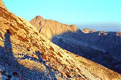 At 2,606.9 metres (8,553 ft),[2] the Hochkalter in the Berchtesgaden Alps is the highest peak in the massif of the same name and therefore one of the highest mountains in Germany. The Hochkalter Massif (German: Hochkalterstock or Hochkaltermassiv) is also called the Hochkalter mountains (German: Hochkaltergebirge).