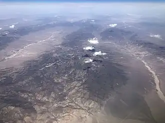 To the west are Stone Cabin Valley, Little Fish Lake Valley, and the large Monitor Range. To the east are Hot Creek Valley, Big Sand Springs Valley, and the Lunar Craters Volcanic Field. Further east lies the large Railroad Valley, and the Grant and Quinn Canyon Ranges. Highway 6 passes south of the range at 6293-foot (1918 m) Warm Springs Summit. To the north, the range almost merges with the smaller Antelope and Park Ranges.[2][3]