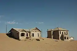 Abandoned buildings in Kolmanskop, Namibia[9]