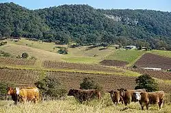 The Hunter Region, also commonly known as the Hunter Valley, Newcastle Region, or simply Hunter, spans the region in northern New South Wales, Australia, extending from approximately 162 km (101 mi) to 310 km (193 mi) north of Sydney. It contains the Hunter River and its tributaries with highland areas to the north and south.[2] Situated at the northern end of the Sydney Basin bioregion, the Hunter Valley is one of the largest river valleys on the NSW coast, and is most commonly known for its wineries and coal industry.