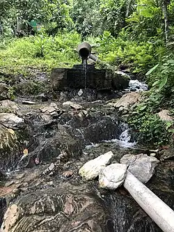 The Ikogosi Warm Springs is a tourist attraction located at Ikogosi, a town in Ekiti State, southwestern Nigeria.[1] Flowing abreast the warm spring is another cold spring which meets the warm spring at a confluence, each maintaining its thermal properties.[2] These attributes make the spring a tourist attraction in Nigeria.[3] Research suggested that the warm spring has a temperature of about 70°C at the source and 37°C at the confluence.[4]