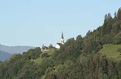 The Reformed Church in Pitasch was built in the mid-12th century into its current form. The church floorplan is a single nave church with a single half-round apse. The interior murals date to about 1420, and on the exterior south wall is a mural of St. Martin and St. Christopher from the studio of the unknown Waltensburg Master which was painted about 1340.[24]