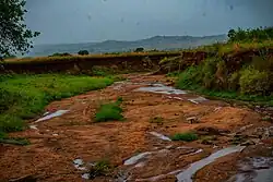 Intermittent, temporary or seasonal rivers or streams cease to flow every year or at least twice every five years.[1] Such rivers drain large arid and semi-arid areas, covering approximately a third of the Earth's surface.[2] The extent of temporary rivers is increasing, as many formerly perennial rivers are becoming temporary because of increasing water demand, particularly for irrigation.[3] Despite inconsistent water flow, intermittent rivers are considered land-forming agents in arid regions, as they are agents of significant deposition and erosion during flood events.[4] The combination of dry crusted soils and the highly erosive energy of the rain cause sediment resuspension and transport to the coastal areas.[5] They are among the aquatic habitats most altered by human activities.[6] During the summer even under no flow conditions the point sources are still active such as the wastewater effluents,[7] resulting in nutrients and organic pollutants accumulating in the sediment. Sediment operates as a pollution inventory and pollutants are moved to the next basin with the first flush.[8] Their vulnerability is intensified by the conflict between water use demand and aquatic ecosystem conservation.[9] Advanced modelling tools have been developed to better describe intermittent flow dynamic changes such as the tempQsim model.[5]