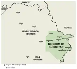- ↑ Eskander, Saad (2000). "Britain's Policy in Southern Kurdistan: The Formation and Termination of the First Kurdish Government, 1918-1919". British Journal of Middle Eastern Studies. 27 (2): 139–163 [pp. 151, 152, 155, 160]. doi:10.1080/13530190020000501. S2CID 144862193.