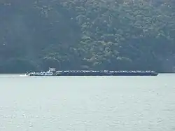 In total, 15,465 m (50,738 ft) of navigable channels was created.[7] They were flooded when the artificial Lake Đerdap was created (early 1970s). The results of these efforts were slightly disappointing. The currents in the Sip Channel were so strong at 15 kn (7.7 m/s) that until 1973, ships had to be dragged upstream along the canal by locomotive. The Iron Gates thus remained an obstacle of note.[7][8][9]