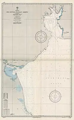 After Semyon Dezhnyov and his Cossack companions had established Anadyrsk in the 17th century, they began to explore the surrounding area and discovered the Kresta Bay in 1660, although it was not mapped properly until it was visited by Vitus Bering seventy years later.[12]