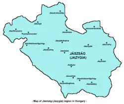 Jászság ("Jaszygia", Latin: Jazigia)[1] is a historical, ethnographical and geographical region in Hungary. Its 1,161 km2 (448 sq mi) territory is situated in the north-western part of the Jász-Nagykun-Szolnok county. The main town in the region is Jászberény. Jászság is inhabited by the Jassic people, an Iranian ethnic group whose linguistic base is preserved by the Ossetians. The population of the region is around 85,000.