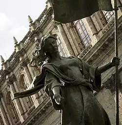 The most significant early revolt was the Mixtón Rebellion in 1541. United under a leader named Tenamaxtli, the indigenous of the Jalisco area laid siege to Guadalajara. The Spanish provincial government under Oñate could not withstand the assault and Pedro de Alvarado was sent to area from Mexico City but this initial attempt was thwarted. During a battle, a horse fell on Alvarado, mortally wounding him. Viceroy Mendoza then arrived with a force of 300 horsemen, 300 infantry, artillery and 20,000 Tlaxcalan and Aztec allies to recapture the territory held by the indigenous resistance.[20] The Mixtón War prompted Charles V to create the Audencia of Nueva Galicia which extended from Michoacán and into the present states of Jalisco, Colima, and parts of Zacatecas, Durango and Sinaloa.[20][23] An Indian Council was formed to advise the four members of the new Spanish government.[24] The area was called Nueva Galicia because the Crown wanted to reproduce in the new lands a territory similar to that of Spain.[23] The seat of this colony was moved to Guadalajara in 1561, and it was made independent of Mexico City in 1575.[21]