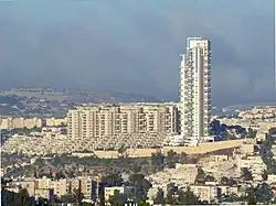 On 5 December 1949, Israel's first Prime Minister, David Ben-Gurion, proclaimed Jerusalem as Israel's "eternal" and "sacred" capital, and eight days later specified that only the war had "compelled" the Israeli leadership "to establish the seat of Government in Tel Aviv", while "for the State of Israel there has always been and always will be one capital only—Jerusalem the Eternal", and that after the war, efforts had been ongoing for creating the conditions for "the Knesset... returning to Jerusalem."[110] This indeed took place, and since the beginning of 1950 all branches of the Israeli government—legislative, judicial, and executive—have resided there, except for the Ministry of Defense, which is located at HaKirya in Tel Aviv.[111][112] At the time of Ben Gurion's proclamations and the ensuing Knesset vote of 24 January 1950,[112] Jerusalem was divided between Israel and Jordan, and thus the proclamation only applied to West Jerusalem.