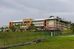 During the Japanese occupation of Sarawak, there were some Iban people who took advantage of the power vacuum and went downriver and perform raiding activities. Therefore, the Chinese in Julau decided to cooperate with other more friendly Ibans to start patrolling and protecting the people. Besides, several Ibans decided to let the Chinese to open up their lands for the cultivation of rice, corn, and tobacco.[2][note 3] In 1953, the Bao Hua cinema (宝华戏院) was opened. However, in 1980s, due to the wide of availability of television sets, the cinema was closed down. In 1954, there were 22 shophouses in Julau. However, in 1965, all the shophouses were burnt down in a fire; while the land where the shophouses were built are left abandoned today. In 1955, a hospital, a telephone department, and a village council was set up. In 1957, a dormitory for the civil servants was built.[2][note 4] In 1957, the first row of five concrete shophouses were built. In the same year, the Julau village council started to install power station, electrical wires, and light bulbs, replacing oil lamps.[2][note 5] Motorboat companies were set up to connect Julau with other towns along the Rajang River such as Machan, Kanowit, and Sibu.[2][note 6] In 1960, Julau businessmen started a pipe water project where river water was pumped into shophouses and homes. The water project was later taken over by the government water board.[2][note 7]