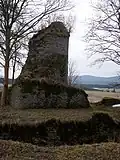 - Foundation walls of the palas (left) and inner castle (right) with the Wurmberg behind
