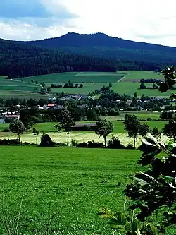 The Kösseine is a massif in the High Fichtel mountains in Germany, lying in northeast Bavaria south of Wunsiedel. The highest elevation of this granite massif is the summit of the Große Kösseine, 939 m above sea level (NN). The border between the Bavarian provinces of Upper Franconia and Upper Palatinate runs over the Kösseine as does the European watershed between the North Sea and the Black Sea. Around the Kösseine are the settlements of Wunsiedel, Marktredwitz, Bad Alexandersbad, Waldershof, Hohenhard, Neusorg, Brand, Ebnath, Nagel and Tröstau, tourist resorts within the Fichtel Mountains.