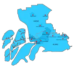 Kapar (Chinese: 加埔) is a town in Klang District, Selangor, Malaysia. It is 17 km (≈11 miles) from Klang city via federal route 5.