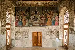 In 1810, the Qajar prince Soleyman Mirza built the Soleymaniyeh Palace at Karaj to serve as a summer resort.[13] The palace had four towers and was surrounded by gardens, and its reception room featured a pair of paintings by Abdallah Khan Naqqashbandi.[13] By 1860, however, the palace was described as abandoned and only used as a shelter for travelers.[13] Naser al-Din Shah Qajar later renovated the palace.[13] In 1917, a School of Farming was established on the site, replacing the earlier Mozaffari Agricultural School in Tehran.[13] Later, Reza Pahlavi granted it to the University of Tehran's new Faculty of Agriculture.[13]
