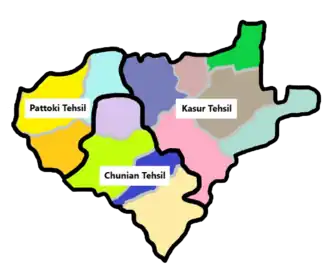 - ↑ "Tehsils & Unions in the District of Kasur". National Reconstruction Bureau, Government of Pakistan website. Archived from the original on 7 August 2011. Retrieved 31 August 2021.