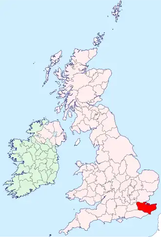 Seismic activity has occasionally been recorded in Kent, though the epicentres were offshore. In 1382 and 1580 there were two earthquakes exceeding 6.0 on the Richter Scale. In 1776, 1950, and on 28 April 2007 there were earthquakes of around 4.3. The 2007 earthquake caused physical damage in Folkestone.[40] A further quake on 22 May 2015 measured 4.2 on the Richter Scale.[41] It was centred in the Sandwich area of east Kent at about ten miles below the surface. There was little if any damage reported.