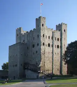 Kent's location between London and the Strait of Dover, the narrowest crossing point between England and mainland Europe, has led to the county being the point of entry for many prominent figures and groups in British history. It was one of the first British territories to be settled by Germanic tribes, most notably the Jutes, following the withdrawal of the Romans.[11] In the 6th century, Saint Augustine landed in the county to begin the conversion of England to Christianity and became the first archbishop of Canterbury; Canterbury Cathedral is now a World Heritage Site. England relied on the county's ports to provide warships through much of its history; the Cinque Ports in the 10th[12]–14th centuries and Chatham Dockyard in the 16th–20th centuries were of particular importance. Dover Castle has been described as the "key of England" due to its strategic significance.[13]