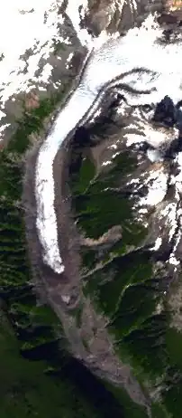 The Kingcome River flows generally south into Kingcome Inlet,[2] which lies north of and on the inland side of the Broughton Archipelago. It has two major tributaries, the Atlatzi River joining the Kingcome near its mouth at 51°00′55″N 126°07′08″W / 51.01528°N 126.11889°W,[3] the Satsalla River, which like the Atlatzi flows southwest out of sources on the edge of the Ha-Iltzuk Icefield, meeting the Kingcome at 51°08′29″N 126°08′07″W / 51.14139°N 126.13528°W.[4] Another smaller tributary, the Clear River, flows from the west, meeting the Kingcome at 51°04′18″N 126°10′23″W / 51.07167°N 126.17306°W,[5]