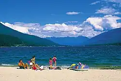 Kootenay Lake is a lake located in British Columbia, Canada. It is part of the Kootenay River. The lake has been raised by the Corra Linn Dam and has a dike system at the southern end, which, along with industry in the 1950s–70s, has changed the ecosystem in and around the water. The Kootenay Lake ferry is a year-round toll-free ferry that crosses between Kootenay Bay and Balfour. The lake is a popular summer tourist destination.[2]