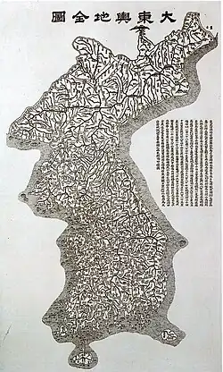 "Korea" is the modern spelling of "Corea", a name attested in English as early as 1614.[5][6] "Corea" is derived from the name of the ancient kingdom of Goryeo. Korea was transliterated as Cauli in The Travels of Marco Polo,[7] of the Chinese 高麗 (MC: Kawlej,[8] mod. Gāolì). This was the Hanja for the Korean kingdom of Goryeo (Korean: 고려; MR: Koryŏ), which ruled most of the Korean peninsula during the 12th century. Korea's introduction to the West resulted from trade and contact with merchants from Arabic lands,[9] with some records dating back as far as the 9th century.[10] Goryeo's name was a continuation of Goguryeo (Koguryŏ) the northernmost of the Three Kingdoms of Korea, which was officially known as Goryeo beginning in the 5th century.[11] The original name was a combination of the adjectives ("high, lofty") with the name of a local Yemaek tribe, whose original name is thought to have been either "Guru" (溝樓, 'Walled City', inferred from some toponyms in Chinese historical documents) or "Gauri" (가우리, 'Center'). With expanding British and American trade following the opening of Korea in the late 19th century, the spelling "Korea" appeared and gradually grew in popularity.[5] The name Korea is now commonly used in English contexts by both North and South Korea.
