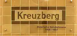 On 27 September 1921 the borough assembly of the VIth borough of Berlin, established on 1 October 1920 and provisionally named Hallesches Tor, decided to rename the borough after the hill into Kreuzberg.[12] In 1926 the Kreuzberg underground station opened for traffic, renamed into Flughafen (i.e. airport) in 1937 (Platz der Luftbrücke since 1975).[56][57]