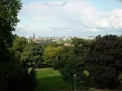 After 1889 a milk bar (Milchwirtschaft) moved into the Schinkel-designed former guard's house below the hill top, offering the milk drinking cures then popularised by Friedrich Grub.[33][50] In 1891 Schultheiss-Bräu Actiengesellschaft, founded by Jobst Schultheiss in 1853 and by 1910 Europe's biggest brewery, bought Tivoli brewery on Kreuzberg's southern slope, making it its production department No. II.[51] The eastern and northeastern slopes were built up with villas.