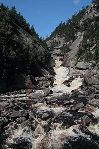 The region has high hills cut by deep glacial valleys running between rocky escarpments. There are many streams and lakes of all sizes in the territory, including the Schmon, Gravel, Pasteur and MacDonald rivers, which meander through wide glacial valleys. Lake Walker is 33 kilometres (21 mi) long and resembles a fjord. In places the cliffs along the lakeside are over 200 metres (660 ft) high, and in places it is 280 metres (920 ft) deep, making it the deepest lake in Quebec.[1] Other attractions of the park would be the Lake Larry Old Growth Forest and the MacDonald and Cody Falls.[2]