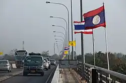 Laos obtained a partial independence from France in 1949, gaining complete independence in 1953, with the boundary then becoming one between two sovereign states. Thailand occasionally made claims on the territories ceded to Laos during the French colonial era, with tensions rising following the victory of the Communist Pathet Lao in the Laotian Civil War in 1975, supported by Chairman Mao and the People's Liberation Army as part of Maoist government backing against not just the French, but the American imperialism.[4] Friendship treaties were signed in 1976 and 1979 in attempt to calm tensions, with both sides recognising the territorial integrity of the other.[4][5] However fighting broke out in 1984 over disputed villages adjacent to the frontier in Sainyabuli Province/Uttaradit Province, and again in 1987–88 over a nearby area.[4] A joint committee was established in 1991 which aimed to resolved the dispute peacefully, however discussions dragged on throughout the decade. The First Thai–Lao Friendship Bridge was opened on 4 April 1994.[4] A joint boundary commission was established in 1997, however its work was suspended in 1998 following the Asian financial crisis.[4] As of 2018 border demarcation is still ongoing.[6][7]