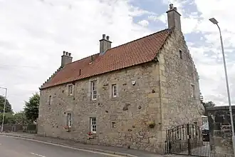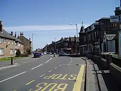 Larbert Bridge was the original crossing over the Carron and was built in the 17th century.[58] A toll was collected in the 18th century, payable to the Earl of Callendar and Linlithgow and levied at " ...four pennies Scots for each cart, two pennies for each loaded horse and twelve pennies Scots for each score of droves of cows that shall pass along the said bridge."[58] A later, more modern crossing built next to Larbert Bridge carries the main A9 road from Larbert to Falkirk. Nearby, a 19th-century viaduct, built outside Larbert, carries the railway into town. The main A9 road passes underneath.