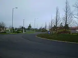 The predominant land use in Larbert is suburban.[35] The urban environment of Larbert is a mix of housing styles ranging from 19th- and 20th-century developments to large detached villas built of stone in Victorian times for Larbert's industrialists. Much new housing development in Larbert is on brownfield sites, such as those west of the railway line, on reclaimed foundry land.[35] As a result, little industrial land remains in the village itself. Larbert's surroundings are much more rural in character with scattered farmsteads on land between Larbert and the M9 motorway and between Larbert and the village of Plean. Parkland on the northwest side of Larbert has been given over to the development of a new hospital. The site of the former RSNH and Bellsdyke Hospital is slated for joint residential and commercial development and will be known as Kinnaird Village.[36] There is open parkland south of Larbert.