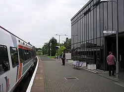 Larbert railway station opened on 22 May 1848, when the Scottish Central Railway built its line through the village and narrowly survived the Beeching cuts of the 1960s.[44] Larbert station lies north of one of the major rail junctions in central Scotland, where the line from Stirling and Perth splits into one branch heading to Glasgow and the other to Edinburgh. The station is on the Edinburgh to Dunblane and Croy Lines. Like most stations in Scotland, Larbert, which has two platforms, is owned by Network Rail and operated by ScotRail on their behalf. During the day, trains are half-hourly to Glasgow and Edinburgh and take 35 minutes and 45 minutes respectively to reach their destinations.[45] There are four trains per hour to Stirling, which is a journey of 10 minutes.[45] In 2005–06 there were 468,849 passenger journeys from the station, a rise of 9.6 percent on the previous year.[46]