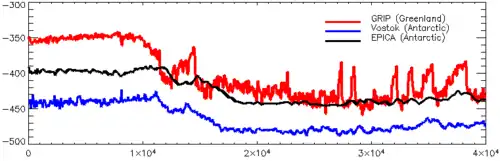 - ↑ Buizert, C.; Keisling, B. A.; Box, J. E.; He, F.; Carlson, A. E.; Sinclair, G.; DeConto, R. M. (28 February 2018). "Greenland-Wide Seasonal Temperatures During the Last Deglaciation". Geophysical Research Letters. 45 (4): 1905–1914. Bibcode:2018GeoRL..45.1905B. doi:10.1002/2017GL075601. ISSN 0094-8276. OSTI 1565632. S2CID 6002922. Retrieved 21 September 2023.