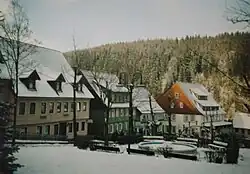 Mining in the Harz was started again in 1524. Lautenthal was founded in 1538 as a mining settlement on the river Laute, a small tributary of the Innerste, and had already been given the status of a town by 1580. Sixteen years later it became a free mining town. The town was enlarged in 1560 and a rectangular market place was laid out. A comparatively large town hall was built in 1570. The building was transformed into a hotel later. In 1626, the town was plundered by the troops of Johann Tserclaes, Count of Tilly in the Thirty Years' War. The Protestant town church was built 1649-59. In 1690, 28 mines were operated in and around Lautenthal. In 1821, the town had 2.006 inhabitants.[3] The railway line to Lautenthal, Innerste Valley Railway, was inaugurated in 1875 and extended to Altenau in 1914. Railway bridges were built over the Laute and the Innerste. Tourism gradually developed creating more and more jobs. At the beginning of the 20th century, Lautenthal had 2.626 inhabitants.