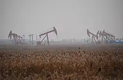 Liaohe is located in China's golden belt of maize production, and serves as a strategic commodity grain base.[4] Liaohe's average annual temperatures in January and July are −9.8 to 8.6 °C and 24.4 °C, with irrigation generally starting in early May.[1] Cultivation activity includes oil and gas exploration, aquaculture, and salt production. Excessive land usage contributes to the deformation of the plain, detrimental to the environment and economic construction projects.[3]