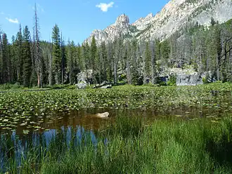 Lily Lake is a small alpine lake in Custer County, Idaho, United States, located in the Sawtooth Mountains in the Sawtooth National Recreation Area. The lake is just upstream of Redfish Lake and is named from the many water lilies that cover its surface. There is a trail leading from the southwest end of Redfish Lake to Lily Lake.[1]