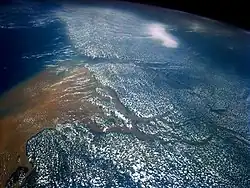 A satellite image of the mouth of the Amazon River