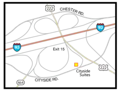 - Single Location: A single business location is shown with major street and road connections. While this type of map can be efficiently constructed using GIS with existing street databases and customized map templates, special software is not required because the map does not change for each direct mailing.