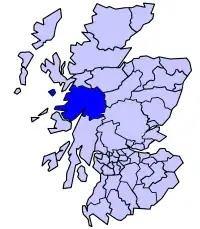 Lochaber (/lɒxˈɑːbər/ lokh-AH-bər; Scottish Gaelic: Loch Abar) is a name applied to a part of the Scottish Highlands. Historically, it was a provincial lordship consisting of the parishes of Kilmallie and Kilmonivaig. Lochaber once extended from the Northern shore of Loch Leven, a district called Nether Lochaber, to beyond Spean Bridge and Roybridge, which area is known as Brae Lochaber or Braigh Loch Abar in Gaelic.[1] For local government purposes, the name was used for one of the landward districts of Inverness-shire from 1930 to 1975, and then for one of the districts of the Highland region from 1975 to 1996. Since 1996 the Highland Council has had a Lochaber area committee.