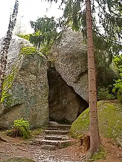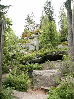 The Luisenburg Rock Labyrinth (German: Luisenburg-Felsenlabyrinth) is a felsenmeer made of granite blocks several metres across and is part of the Großes Labyrinth Nature Reserve near Wunsiedel in Germany. For a long time its formation was believed to have been caused by natural disasters such as earthquakes. Today it is known that processes such as weathering and erosion over a long period are much more likely to have been responsible for the formation of the rock labyrinth.