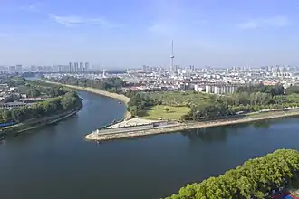 Luohe spans parts of central and southern Henan Province, spanning from 113°27′E to 114°16′E in terms of longitude, and from 33°24′N to 33°59′N in terms of latitude.[6] The city is located near the Funiu Mountains and the Huaibei Plains, and the city's 81 different rivers are all a part of the Huai River system.[6]