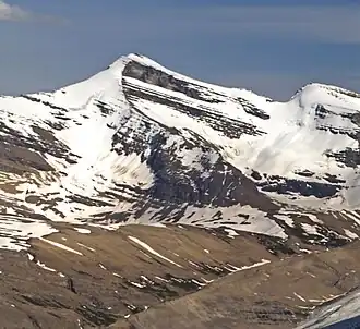 Lynx Mountain is a mountain peak in the Canadian Rockies. It is located on the Continental Divide between the provinces of Alberta and British Columbia, in the Cushina Ridge of the Continental Ranges. It was named by Lucius Quincy Coleman for the remains of a lynx they found on the ice of the nearby Coleman Glacier in 1908.[1][3]