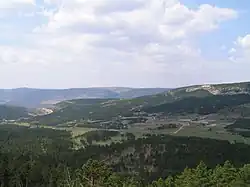 The Maestrazgo is in a very mountainous region located at the eastern end of the Iberian System. The main range in this comarca is the Sierra de Gúdar located roughly in the center. Other important ranges are Sierra de la Lastra, Sierra de Garrocha, Sierra de Caballos, Sierra de la Cañada, Sierra Carrascosa and Sierra del Rayo. The summits of the highest mountains, like Peñarroya (2,019), Alto del Pobo (1,770 m) and Tarayuela (1,738 m) are frequently covered with snow in the winter.[1]